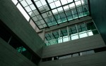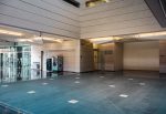 Un amplio hall que recibe a los visitantes, adornado con una fuente y una Plaza de la Lluvia que se integran al ambiente exterior del Centro de Convenciones.