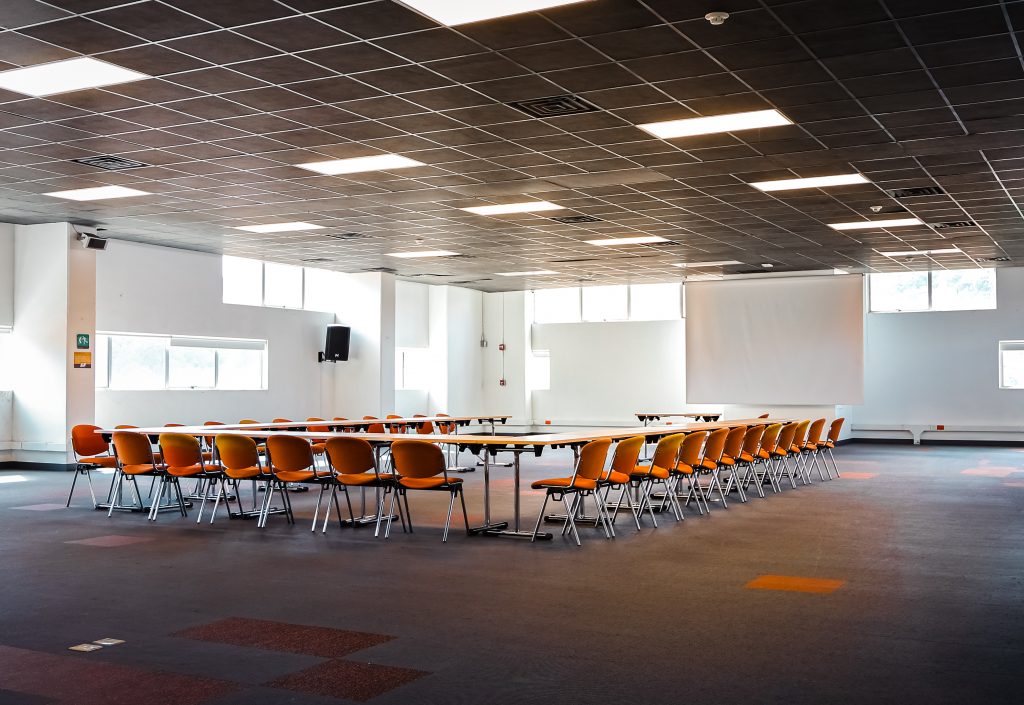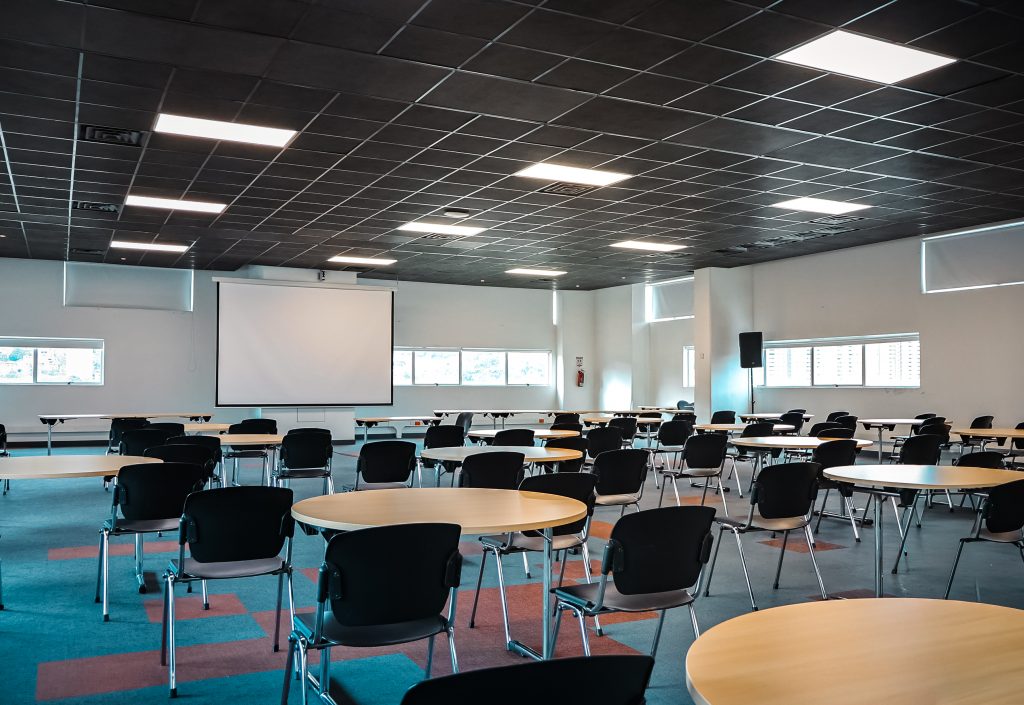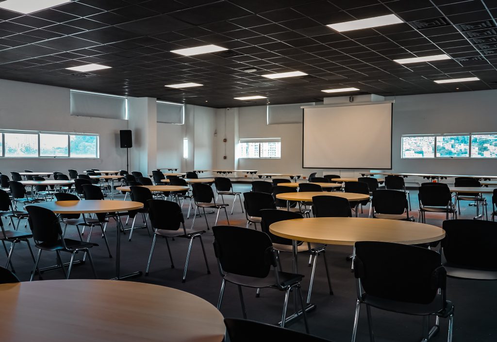 Un gran salón equipado con aire acondicionado, con capacidad para 500 personas y adaptable en 3 salas, dotadas cada una con sistemas de audio, video independiente e iluminación.